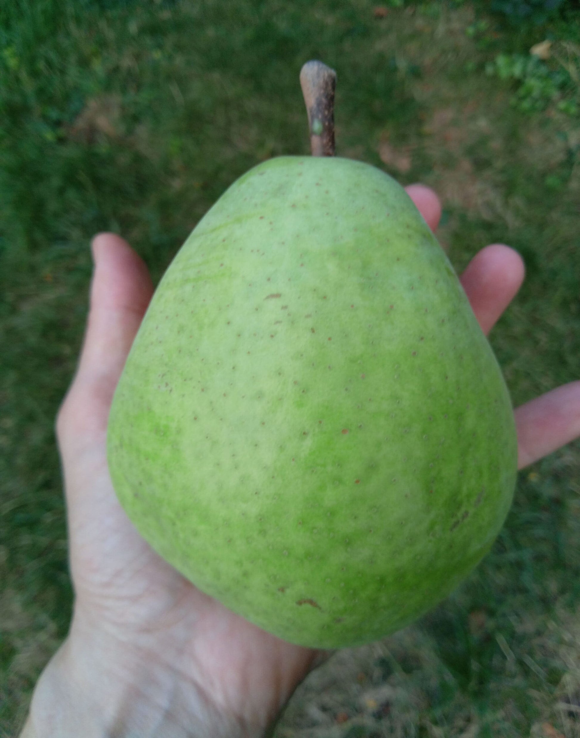 - Descriere fruct: Fructele sunt de dimensiuni medii spre mari, cu o formă rotund-conică și o coajă verde-gălbuie, uneori cu o ușoară nuanță roșiatică sau nervuri ruginite.